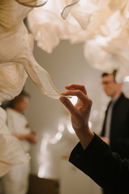 At the heart of this installation is "Celeste," the embodiment of the sky itself. "Celeste," meaning "of the sky," is a site-specific installation meticulously crafted to adapt and harmonize with its surroundings. Composed of different cloud forms, "Celeste" cascades from the heavens to the earth, draping gracefully all the way to the "Isole" - side tables ingeniously crafted from shells recovered from food waste, a beautiful reminder of sustainability and the interconnectedness of all things.